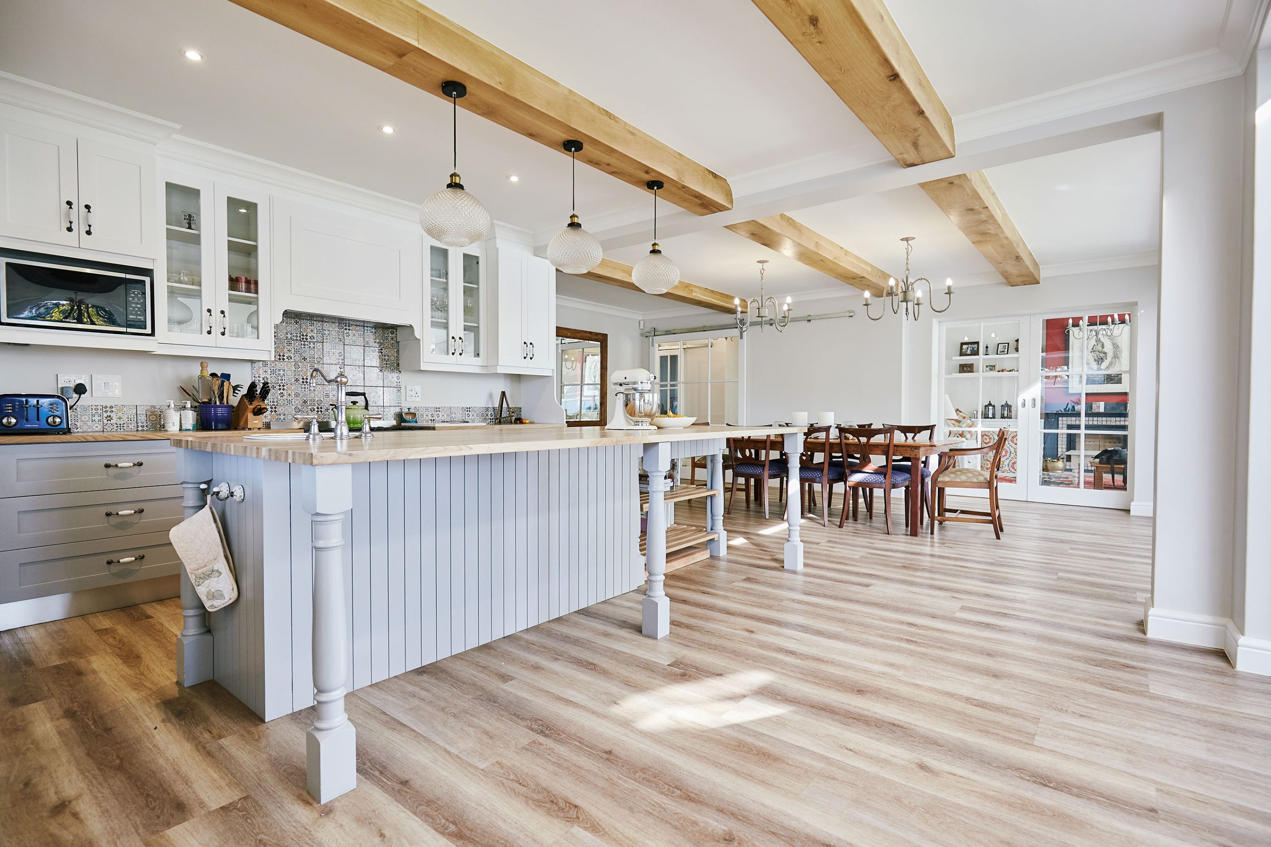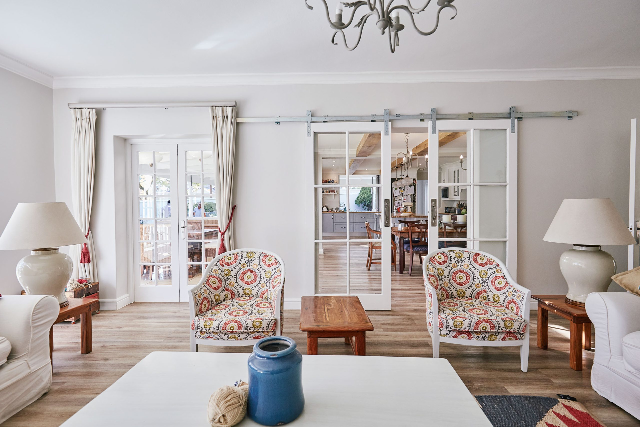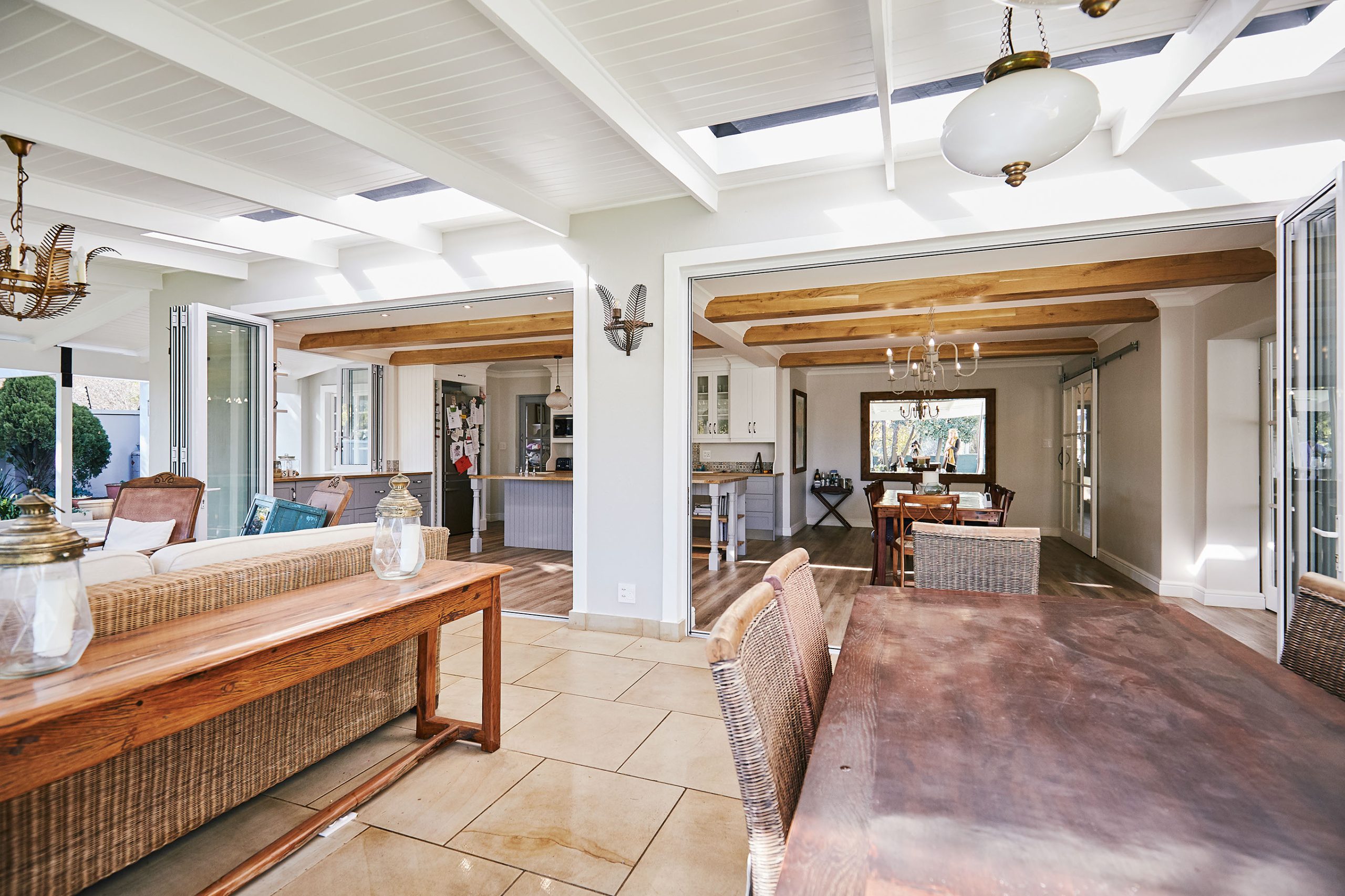 This home was structured as a typical home of its time, with each room boxed away from the next. Very little celebration of the beautiful garden and an added cottage that made little sense to the flow of the home. The client is the most wonderful family of five who love to entertain, have guests to stay, enjoy family time with a few dogs in tow, but who also are working professionals based from home. The trick was to create an open bright home giving working spaces privacy and quiet away from kid zones, but to also create a wonderful family space that opens to the magnificent garden and corrects the flow of the home. A lot of opening out , opening up and connecting spaces visually and physically through glazed sliding barn doors. The kitchen became the heart of the home that everything opened and connect to, allowing for the family to function in and around this beautiful space.