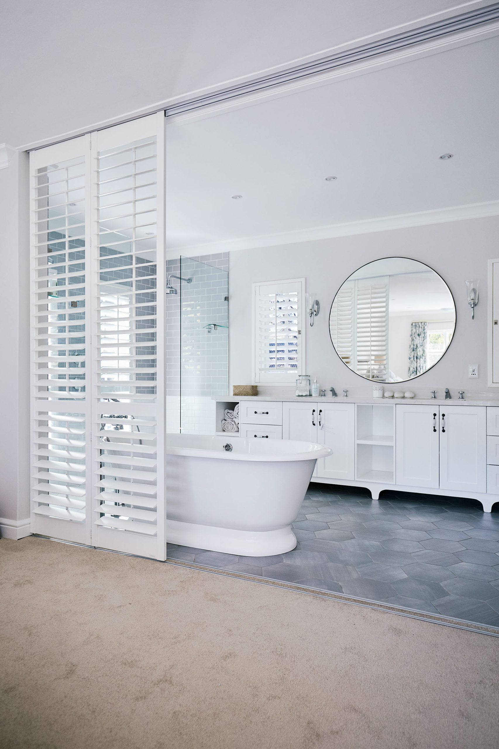 A few careful use and reuse of fireplace surrounds , windows and doors were all incorporated into the home to help with cost savings and to keep some authentic feels of the original house. A wonderful solution of sliding shutters in the main bedroom suite allowed the clients to manipulated , alter and continually change the feel of their master suite.
